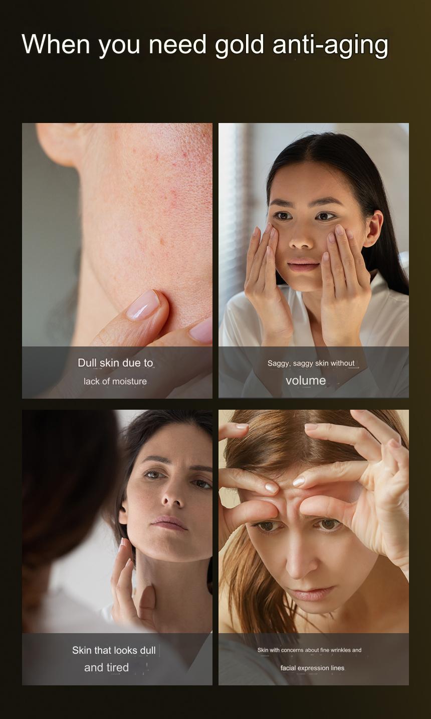 Purified water, glycerin, hydroxyethyl urea, butylene glycol, dipropylene glycol, ethanol, PEG-60 hydrogenated castor oil, phenoxyethanol, carbomer, triethanolamine, betaine, panthenol, niacin Amide, gold (400ppm), hydrolyzed extensin (100ppm), sodium hyaluronate, raspberry ketone, adenosine, hydroxyethylcellulose, disodium EDTA, 1,2-hexanediol, ethylhexyl Glycerin, fragrance, hexylcinnamal, linalool.