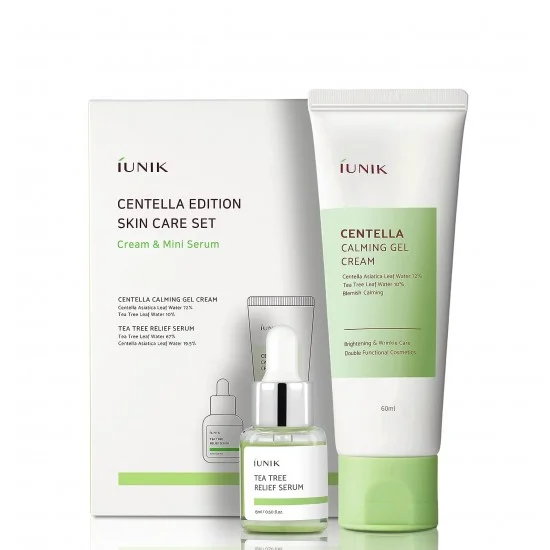 সেন্টেলা এশিয়াটিকা এবং টি ট্রি এক্সট্রাক্টস দ্বারা তৈরি পণ্যগুলির সাথে একটি স্কিনকেয়ার সেট, যা আপনার ত্বকে দাগের যত্ন এবং চমৎকার প্রশান্তিদায়ক প্রভাব সরবরাহ করে।