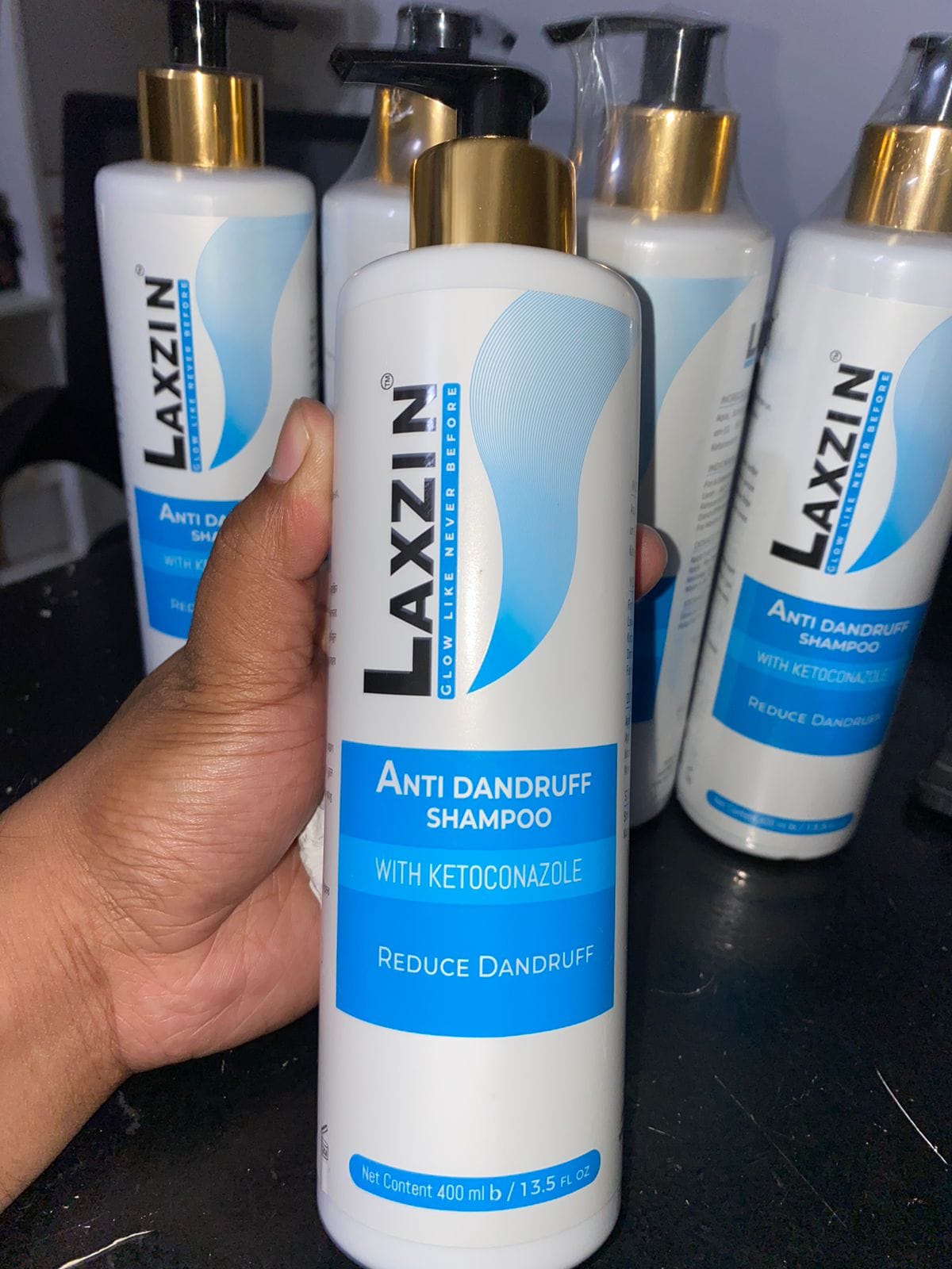 2. Apply a generous amount of Laxzin Anti-Dandruff Shampoo to scalp and hair.